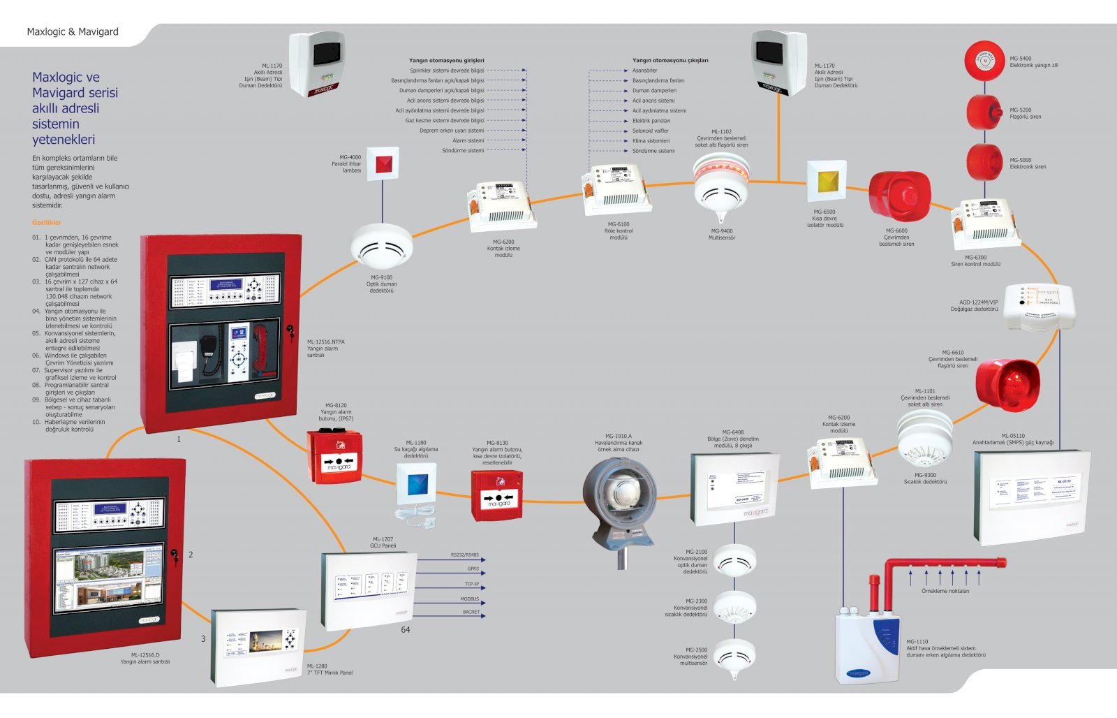 Sesli ve görsel uyarı mekanizmaları ile bina içerisindeki افراد anında bilgilendirilir ve güvenli tahliye süreci başlatılır. Sistem; duman dedektörleri, kontrol paneli, sirenler ve manuel alarm butonlarından oluşarak kesintisiz koruma sağlar.
